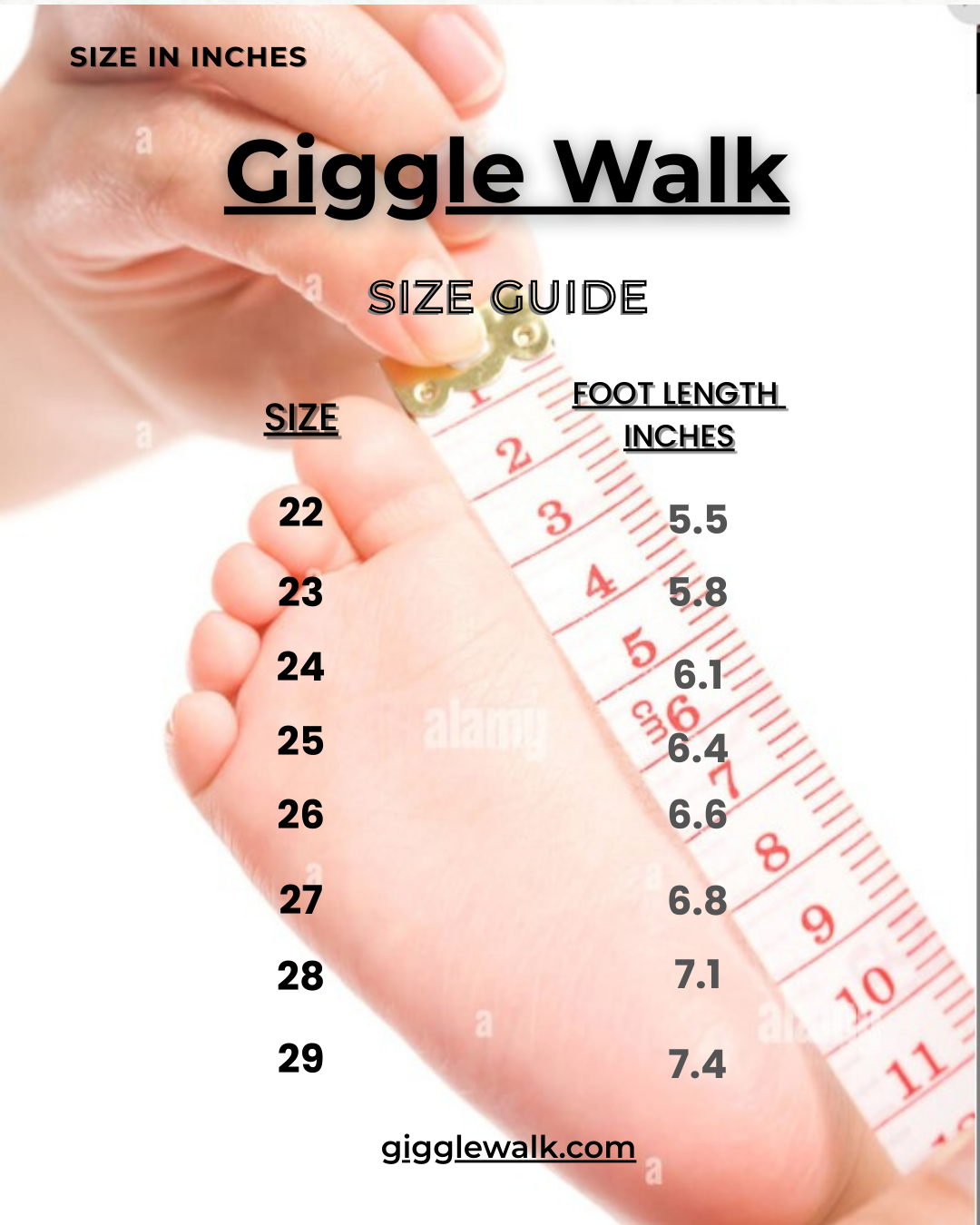 Measure your child’s foot length in inches carefully.